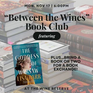 The next “Between the Wines” book club gathering at The Wine Reserve will be on Monday, Nov 17 at 6pm. We will be reading The Goddess of Warsaw by Lisa Barr. We are also promoting a book exchange at this event so bring one or two books along with you to trade with others! Happy reading!