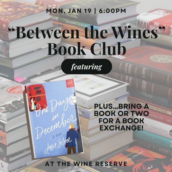 The next “Between the Wines” book club gathering at The Wine Reserve will be on Monday, Jan 19 at 6pm. We will be reading One Day in December by Josie Silver. We are also promoting a book exchange at this event so bring one or two books along with you to trade with others! Happy reading!